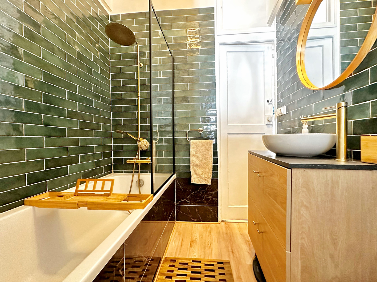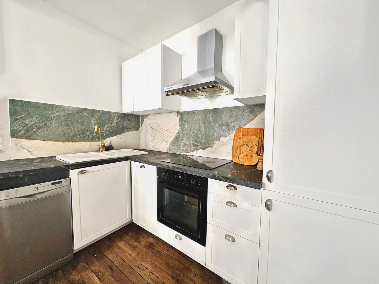 Cet appartement de charme a été entièrement rénové avec soin, offrant ainsi un mariage harmonieux entre authenticité et modernité. Dès l'entrée, le cachet de l'ancien se révèle à travers ses grands placards, ses moulures, ses cheminées et son parquet massif. La partie jour se compose d'un séjour lumineux accompagné d'une cuisine ouverte entièrement équipée, créant ainsi un espace convivial idéal pour partager des moments de détente et de convivialité en famille ou entre amis.