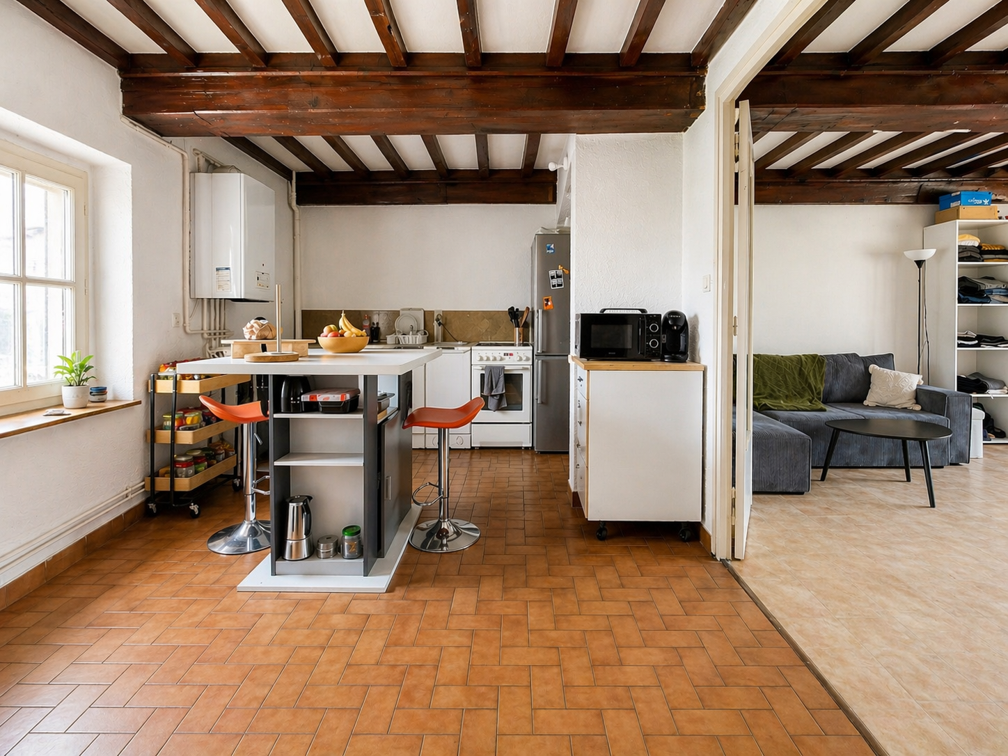 Les charges de copropriété sont maîtrisées à hauteur de 88 € par mois, incluant notamment l’eau froide et l’entretien de la chaudière, avec un chauffage individuel au gaz.