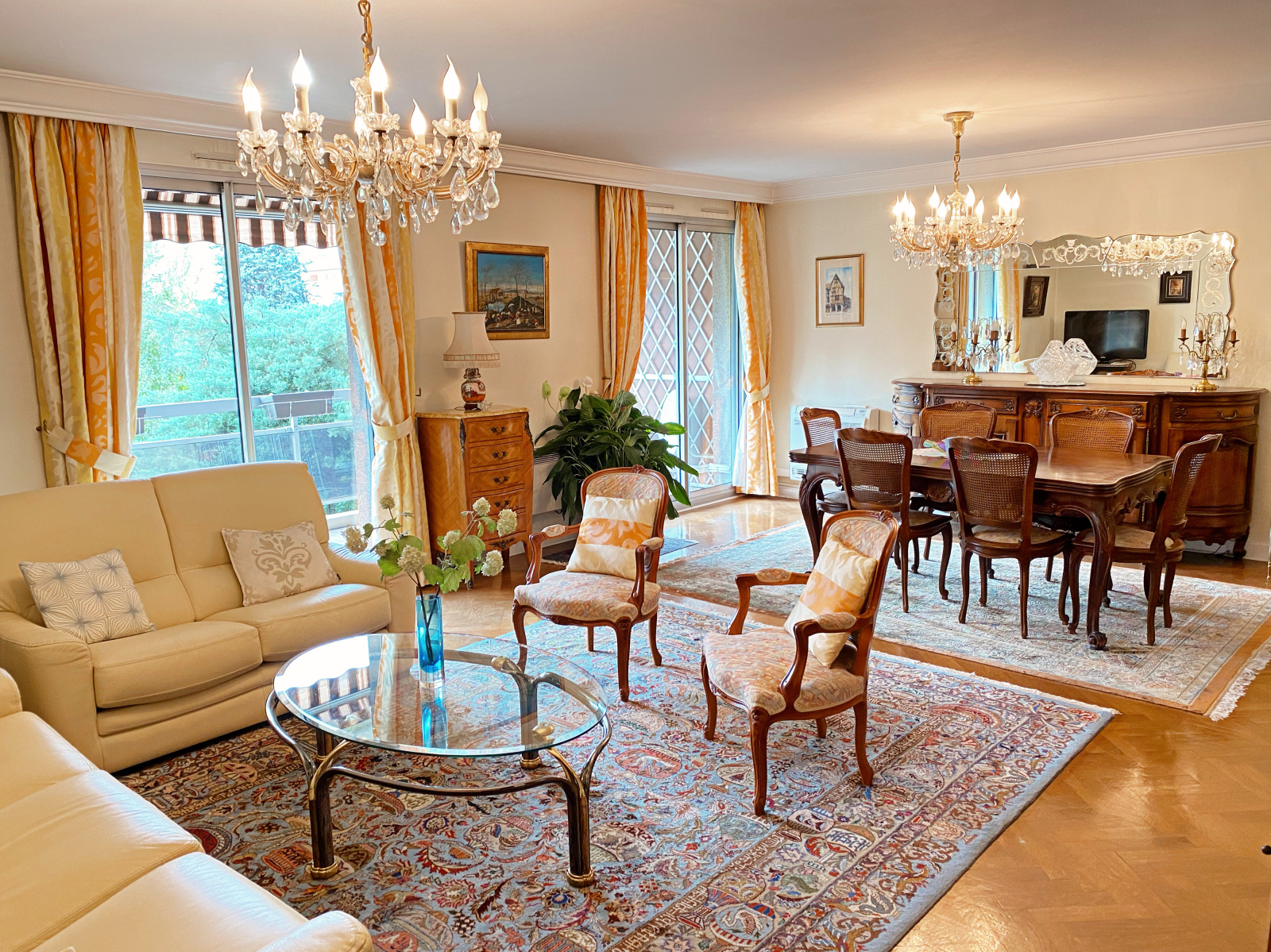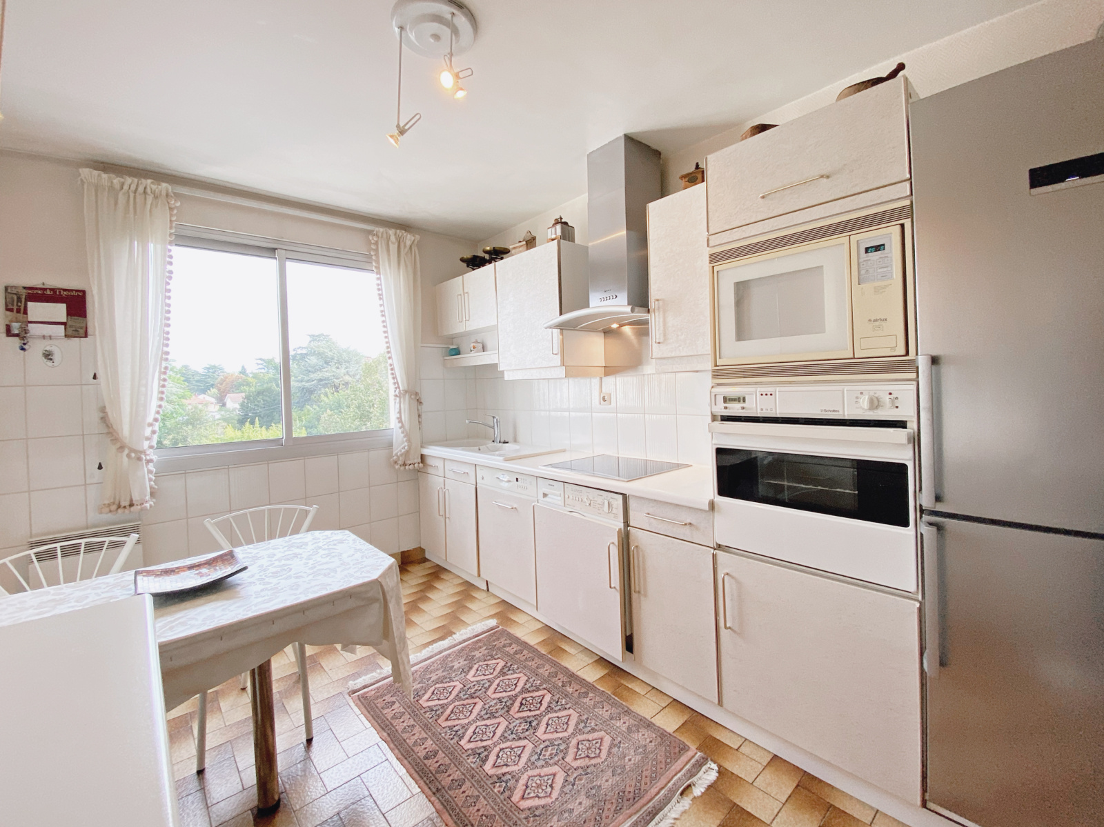 Sur la commune de TASSIN-LA-DEMI-LUNE : nous vous proposons à la vente ce bel appartement proche de toutes commodités (Transports en communs, commerces, écoles etc...), au 2e étage sur 3 d'une résidence calme année 1976 de standing, sécurisée et arborée, venez découvrir cet appartement 5 pièces traversant Nord/Sud sans vis-à-vis de 110m² carrez. L'appartement se compose d'un spacieux séjour d'environ 35m² exposé Sud/Est avec deux portes-fenêtres donnant accès à un balcon de 20m² avec vue dégagée sur le jardin ; une grande cuisine indépendante entièrement équipée. Un couloir avec de grands placards vous mènera jusqu'à la partie nuit où vous retrouverez 3 belles chambres dont deux ayant accès au balcon ; une salle de bain avec double vasque, et une salle d'eau. Des travaux de rafraîchissement sont à prévoir afin de sublimer ce bien. Une grande cave d'environ 13m² en sous-sol complète ce bien. Stationnement : Vous bénéficierez d'un garage en box fermé en sous sol, ainsi que d'une place de parking privative en extérieur.